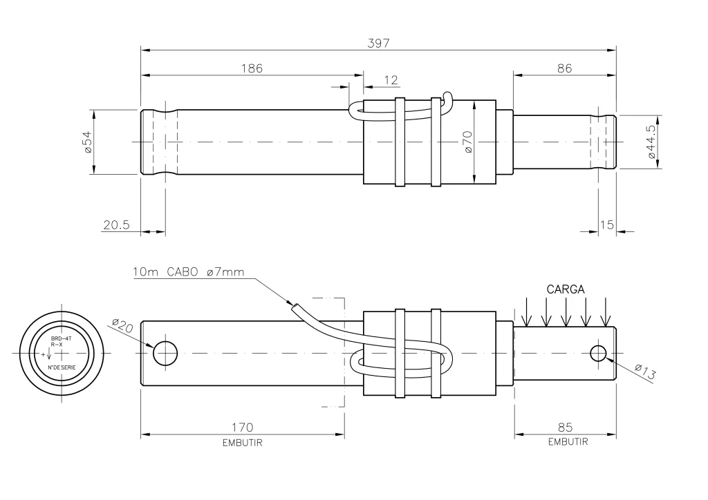 As células de carga mod. BRD foram desenvolvidas para pesagem de caçambas de veículos e máquinas agrícolas, em severas condições de trabalho. Aceitam esforços de torção e flexão sobrepostos ao peso, em proporções que seriam impraticáveis com os modelos convencionais, sem alterar significativamente os resultados de medição. A montagem é muito simples e não há necessidade de suportes especiais, basta fixar à estrutura e a carga por luvas com parafusos passantes. A sensibilidade é pré-calibrada em fábrica dentro de (+/- 0,1%), permitindo a montagem em campo sem necessidade de ajustes trabalhosos. A compensação do zero e da sensibilidade com a temperatura possibilita pesagens exatas mesmo em condições adversas de temperatura (de 0 a +50°C).